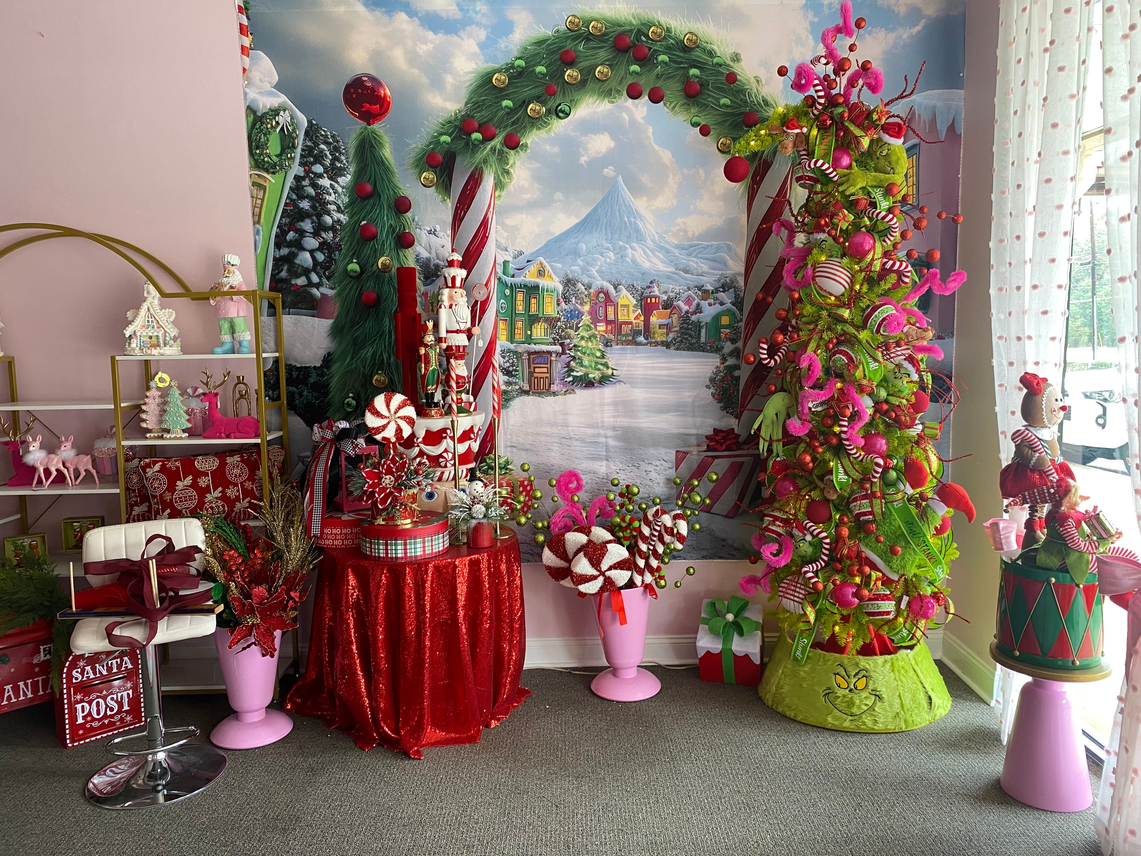 11" x 22" Velvet & Trim Stripe Poinsettia Stem: Red, Black & White